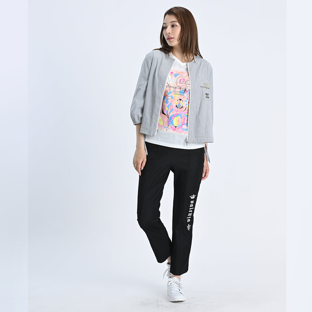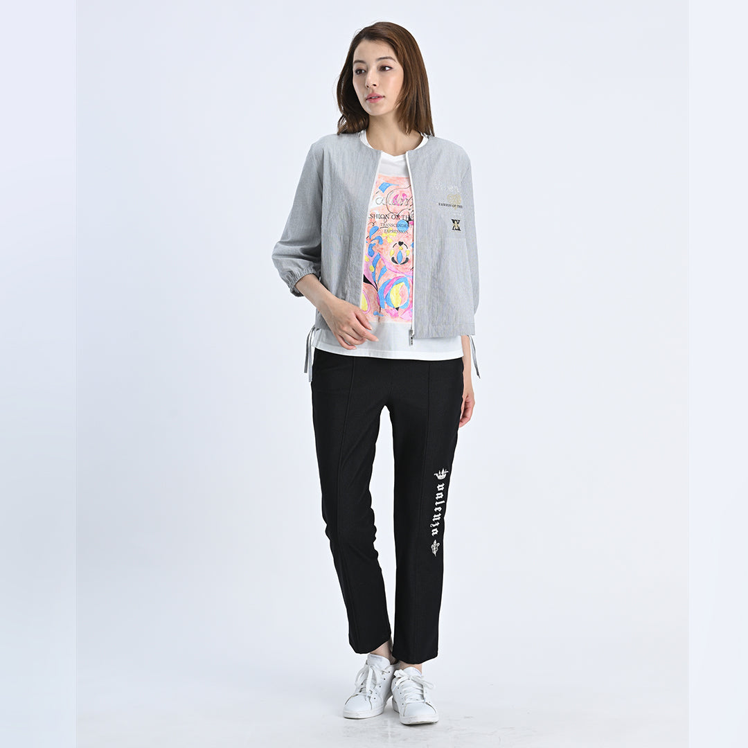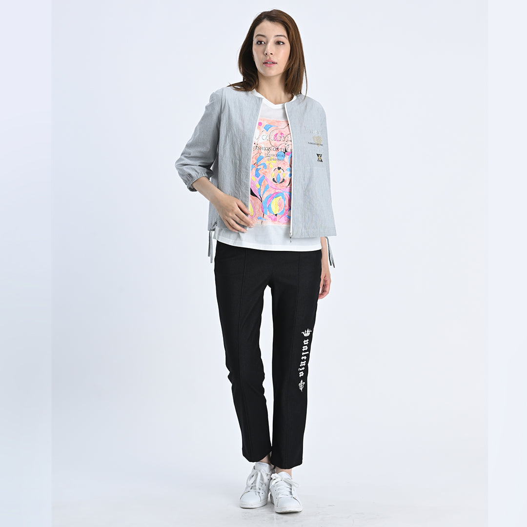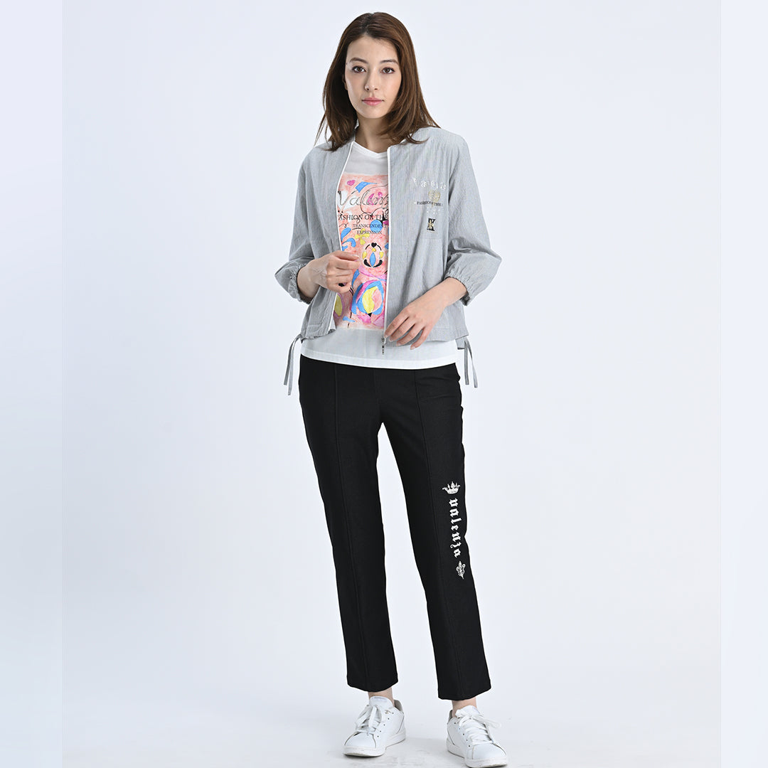裾が絞れるようになっているので合わせるボトムによってシルエットを変えて楽しめます♪
