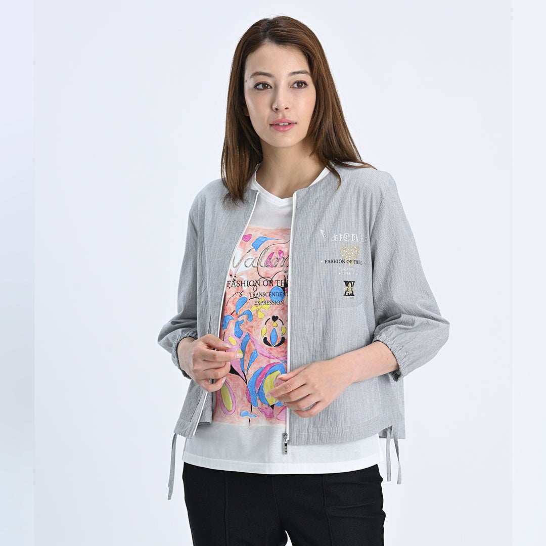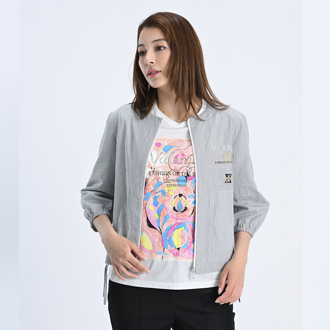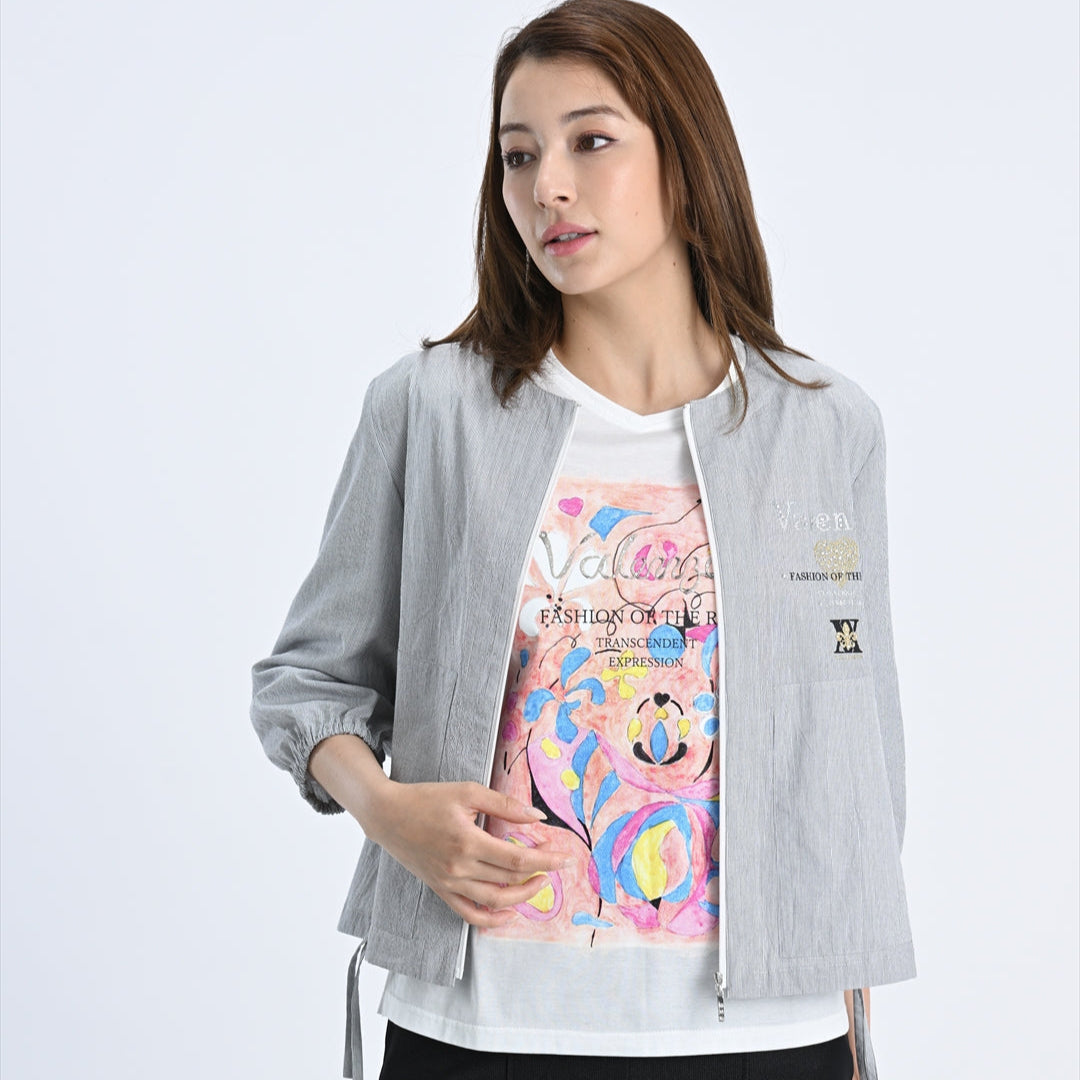 【七分袖】ヘアラインストライプ ブルゾンジャケット VALENZA 5157530