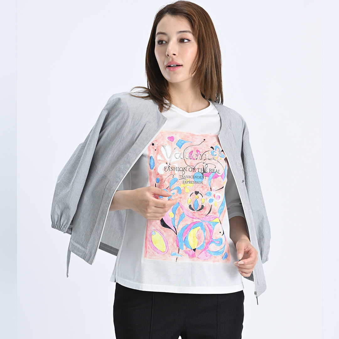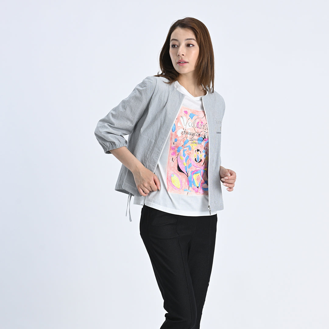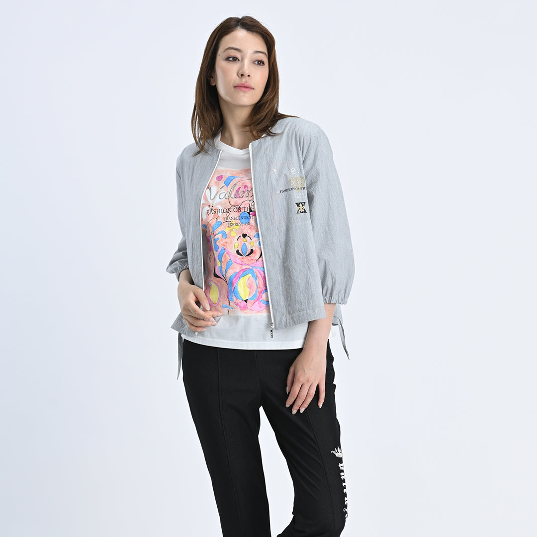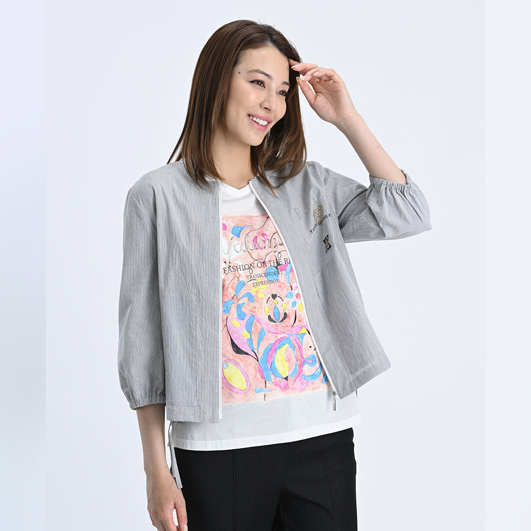 【七分袖】ヘアラインストライプ ブルゾンジャケット VALENZA 5157530