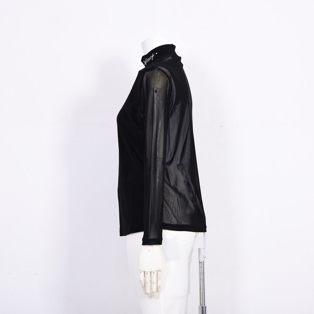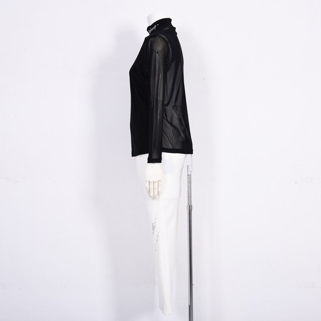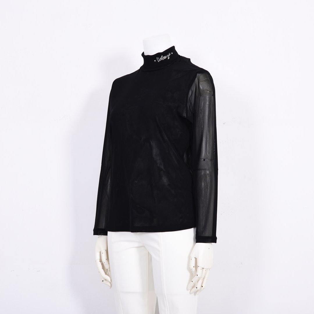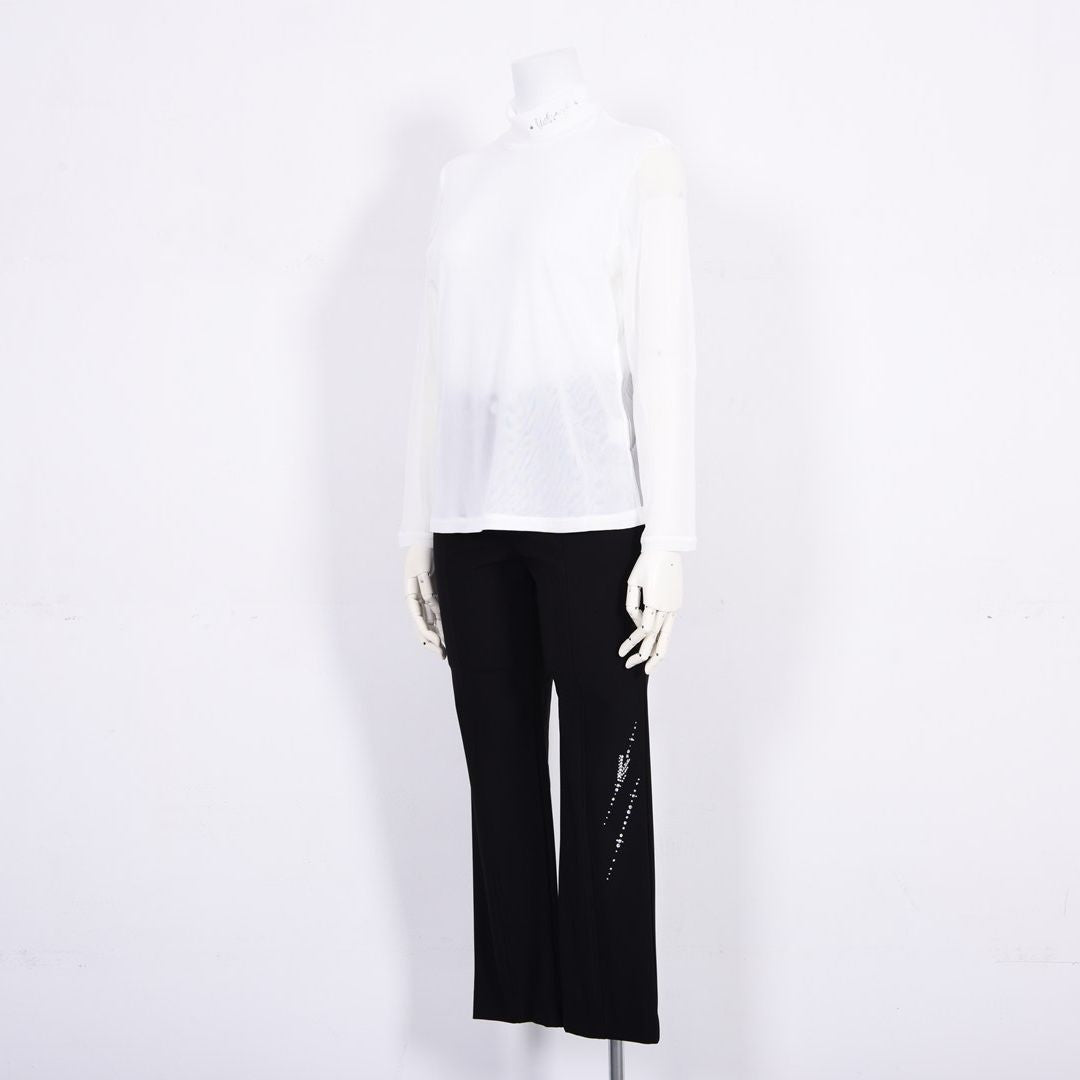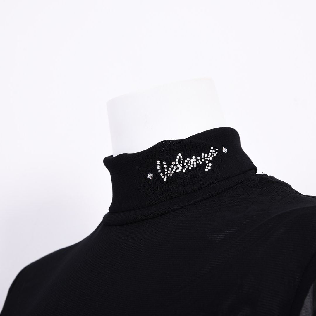 ハイネック部分にはさりげなくラインストーンを施しアクセントに。