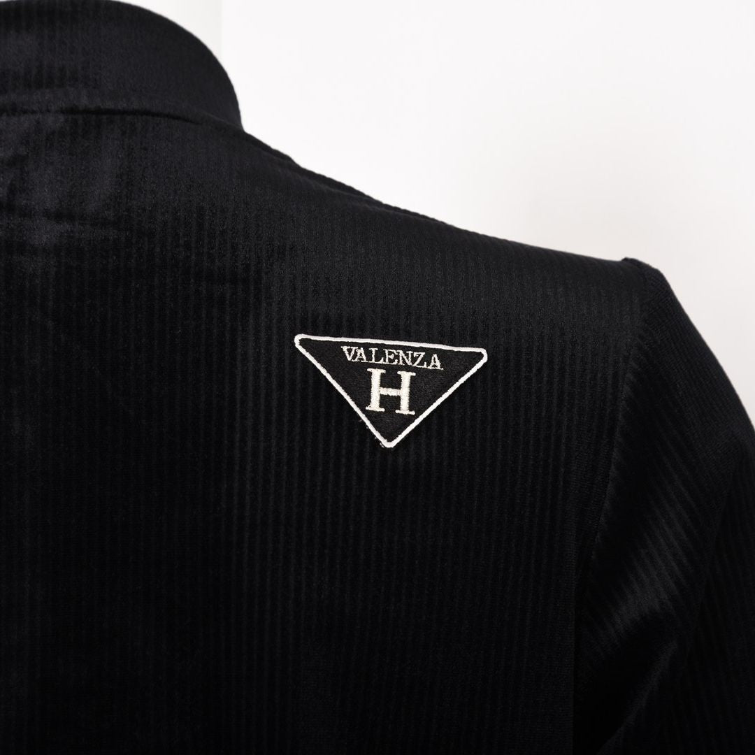セミダル糸を使用した程よい光沢感のベロア素材にストライプ柄のエンボス加工を施した素材です。