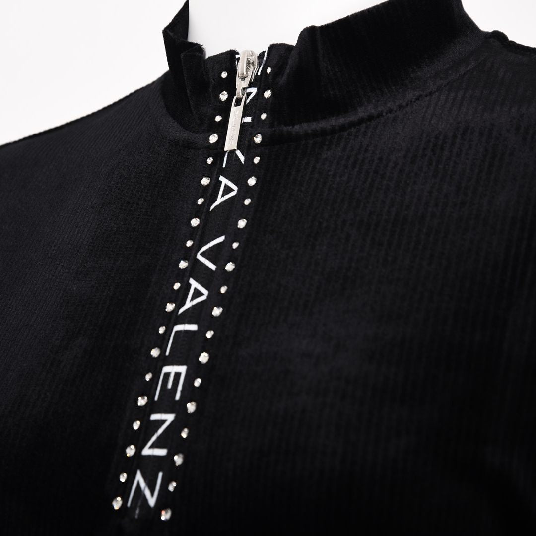 ベロアならではのやわらかい着心地ですね。ほどよいフィット感でベストやコートの中に着てもごろつきや窮屈な感じもないと思います。着丈はヒップが隠れるくらい。袖丈は甲にかかるくらい。(158cm/40号)