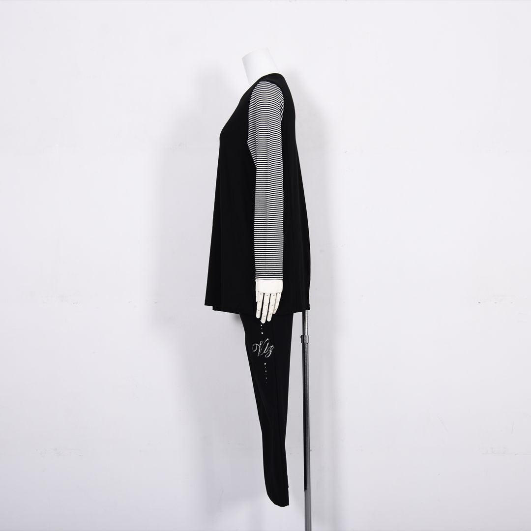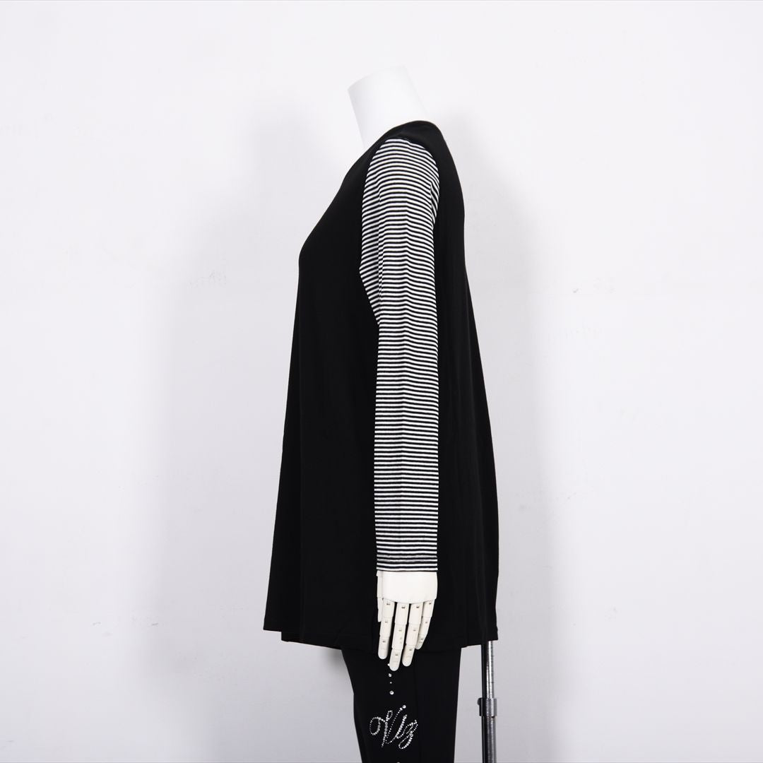 【Lサイズ】袖ボーダー チュニックカットソー VALENZA 5552512