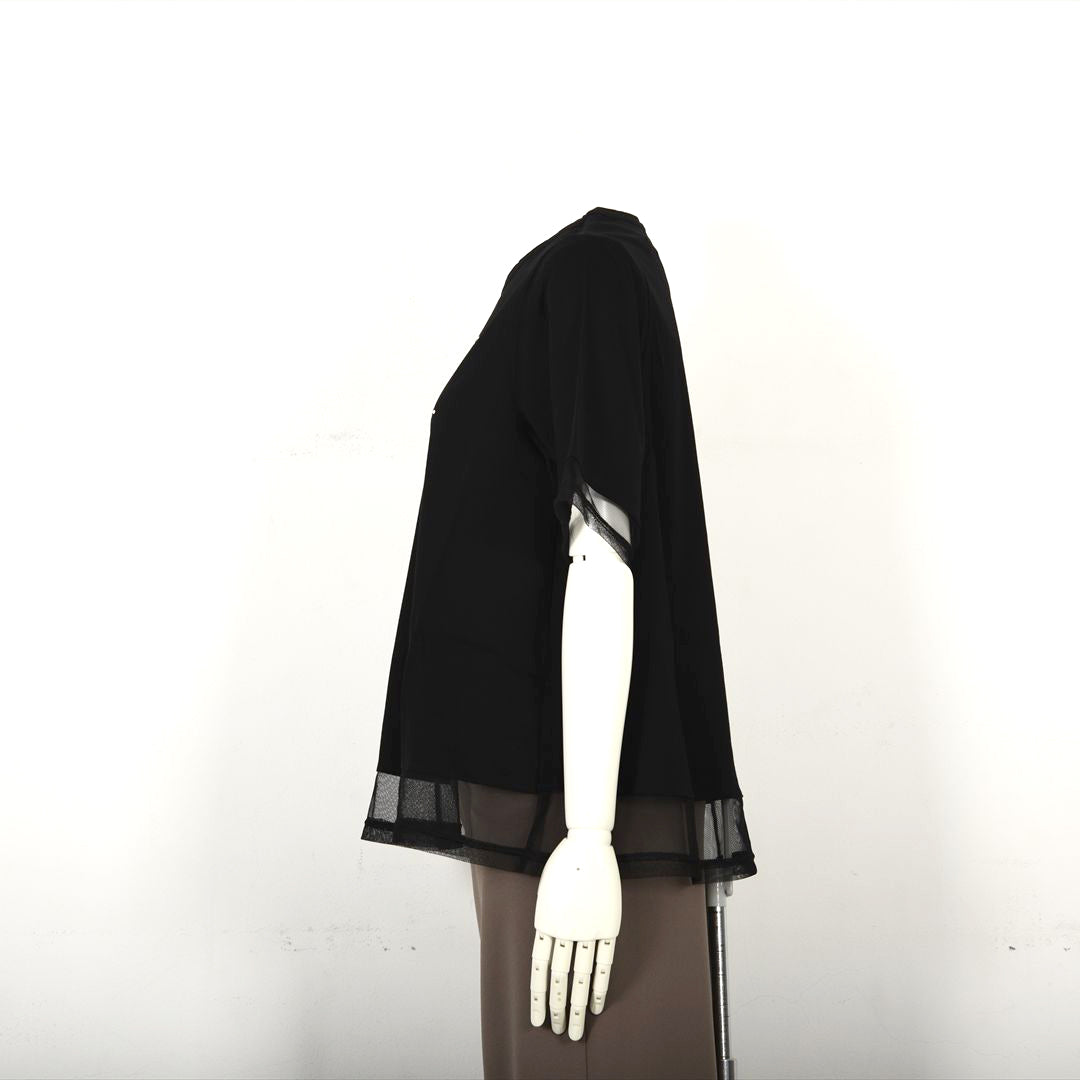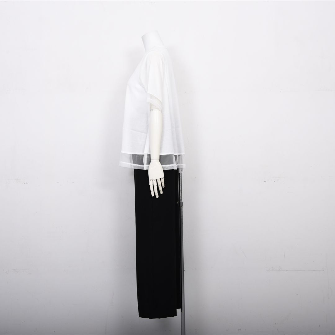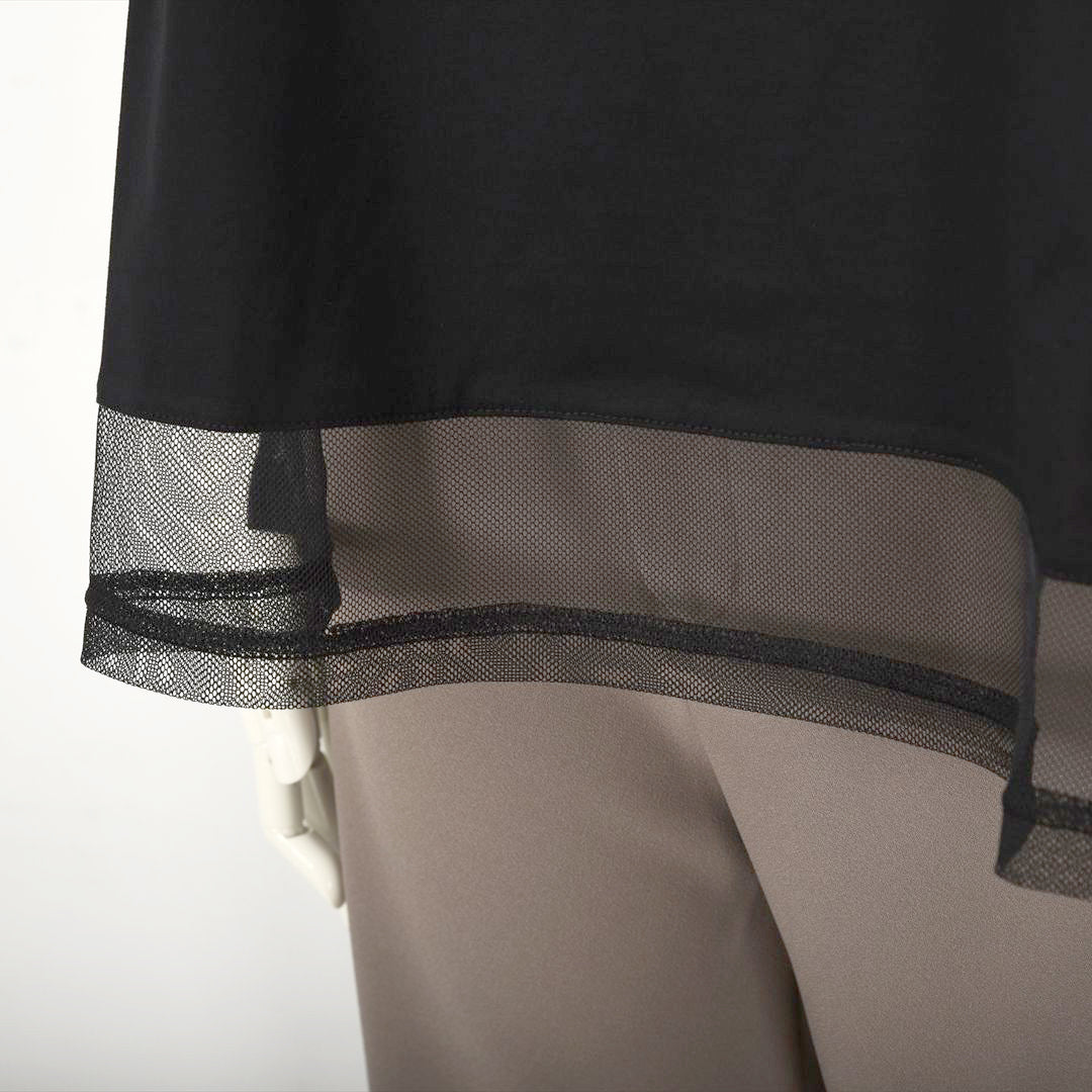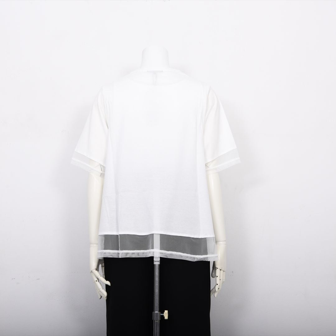袖口と裾をチュールで切り替えて涼やかな雰囲気に。