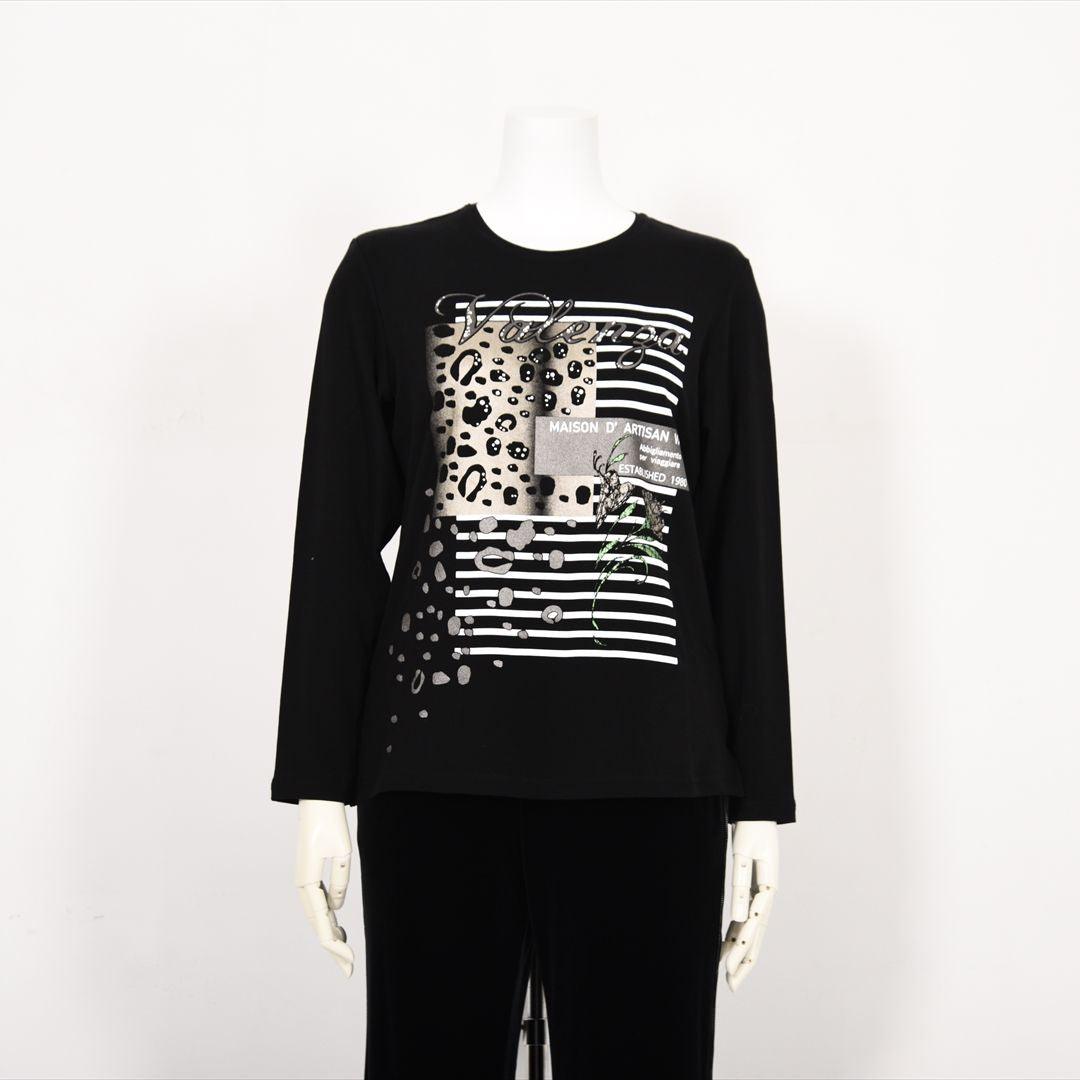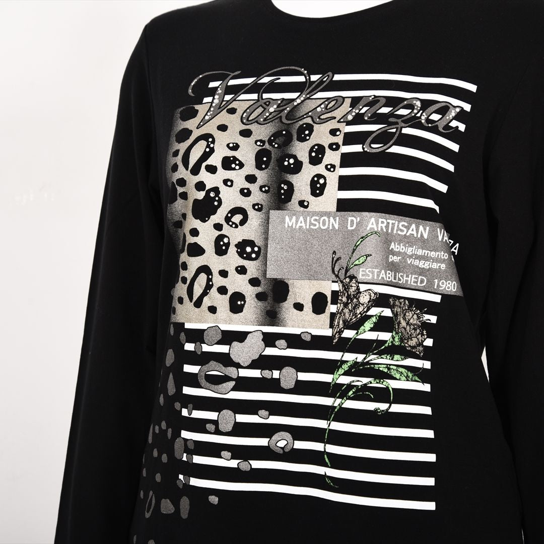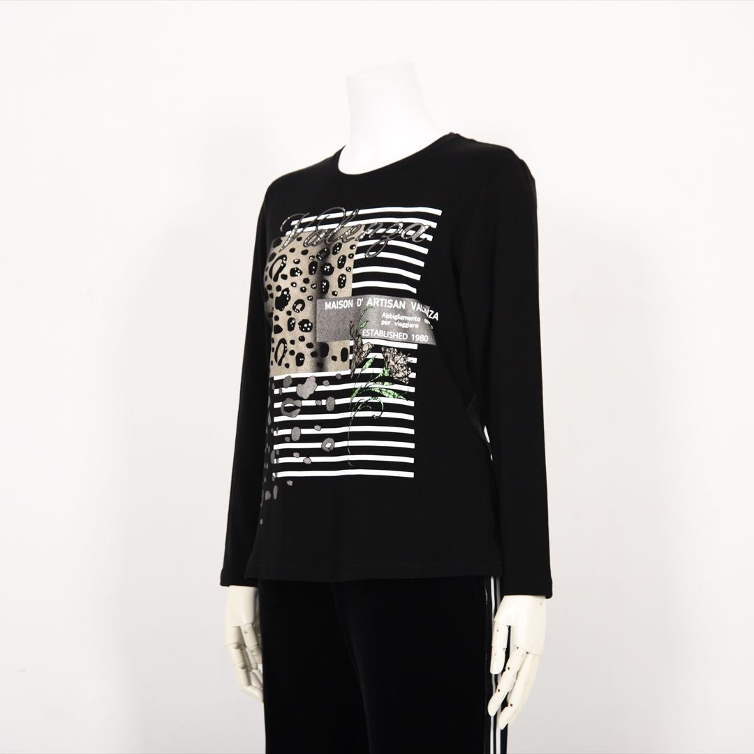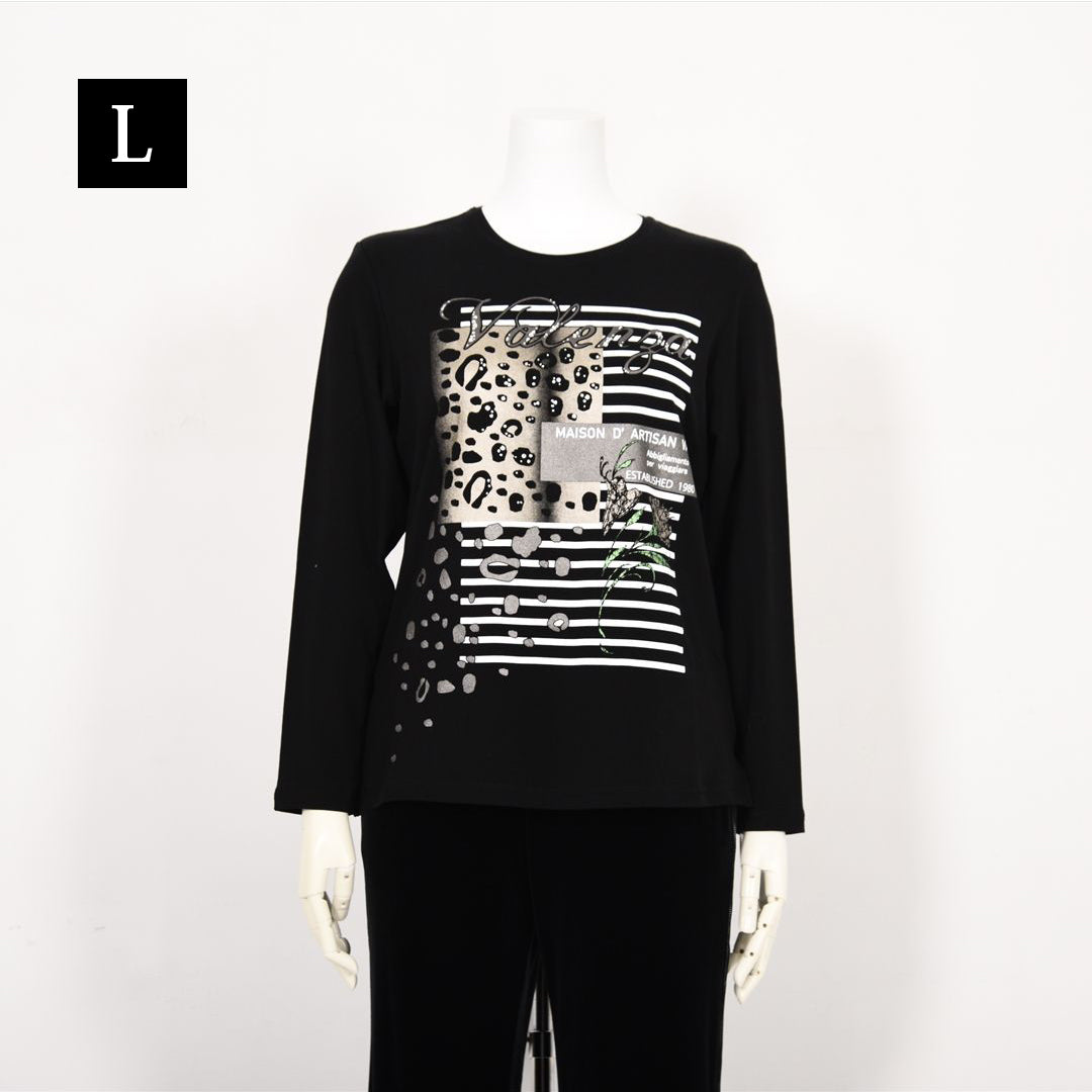 【Lサイズ】ヒョウ柄×ボーダー プリントカットソー VALENZA 5552607
