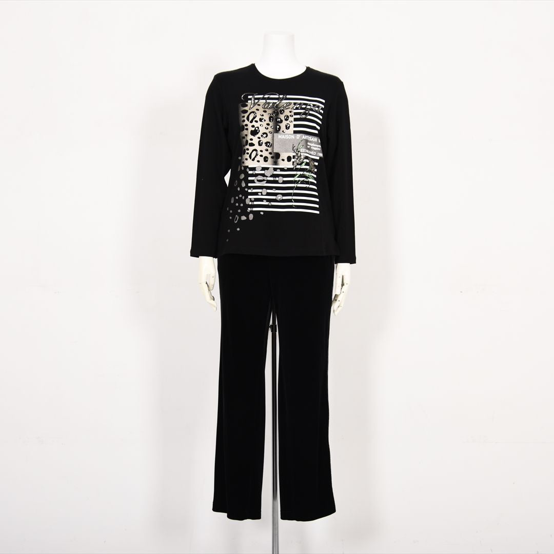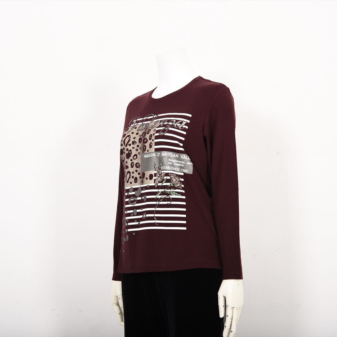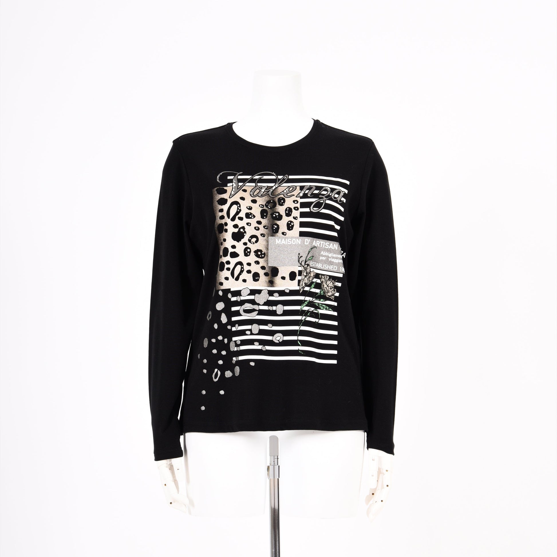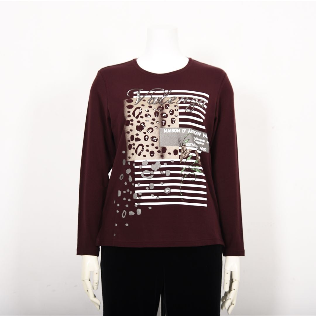 【Lサイズ】ヒョウ柄×ボーダー プリントカットソー VALENZA 5552607