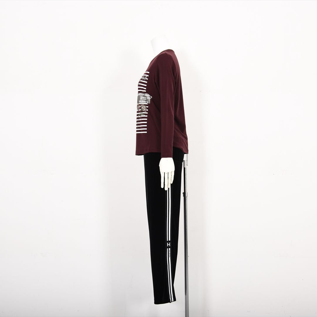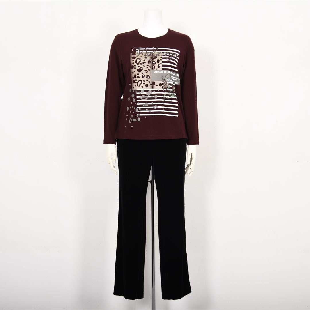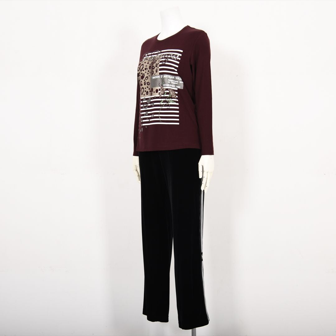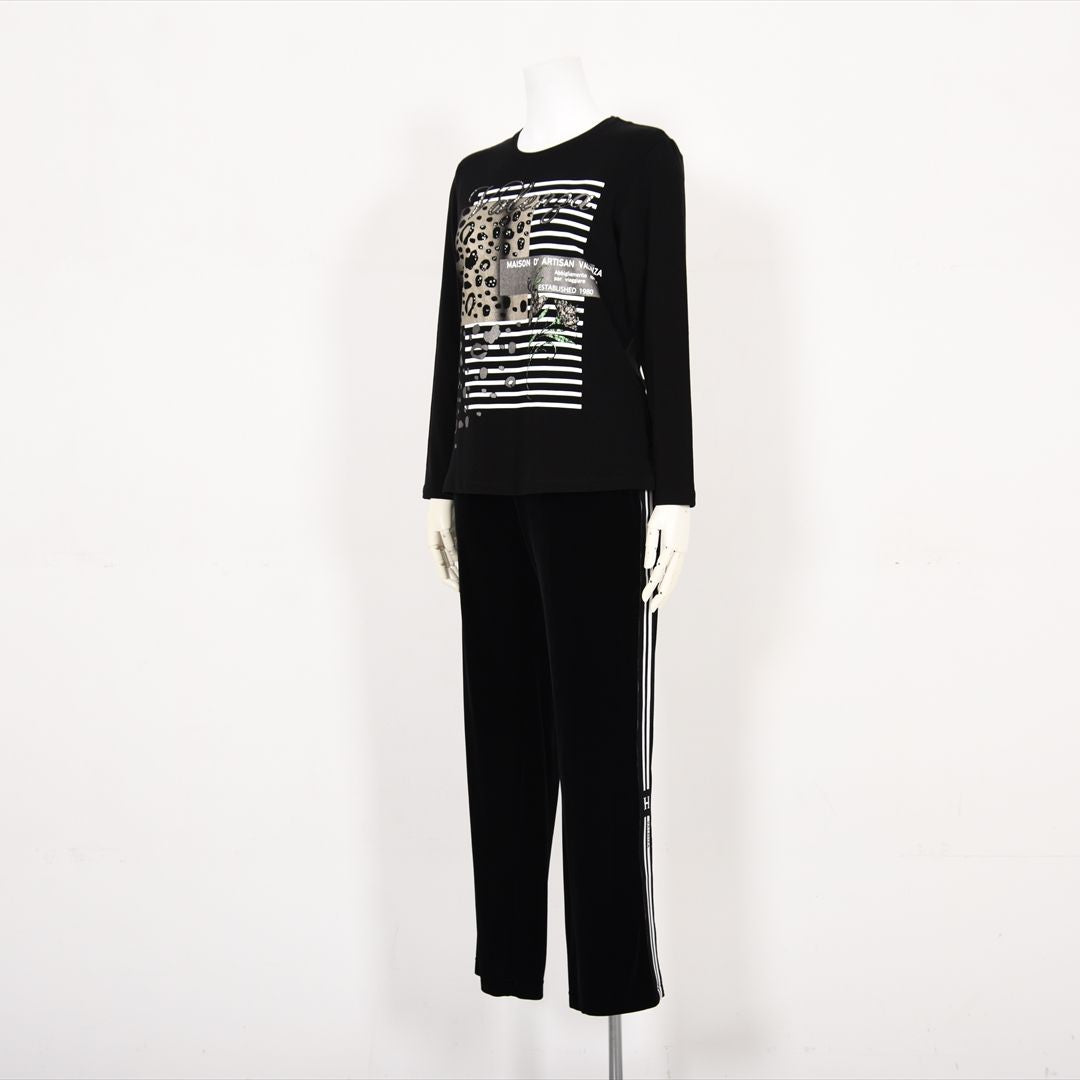 【Lサイズ】ヒョウ柄×ボーダー プリントカットソー VALENZA 5552607