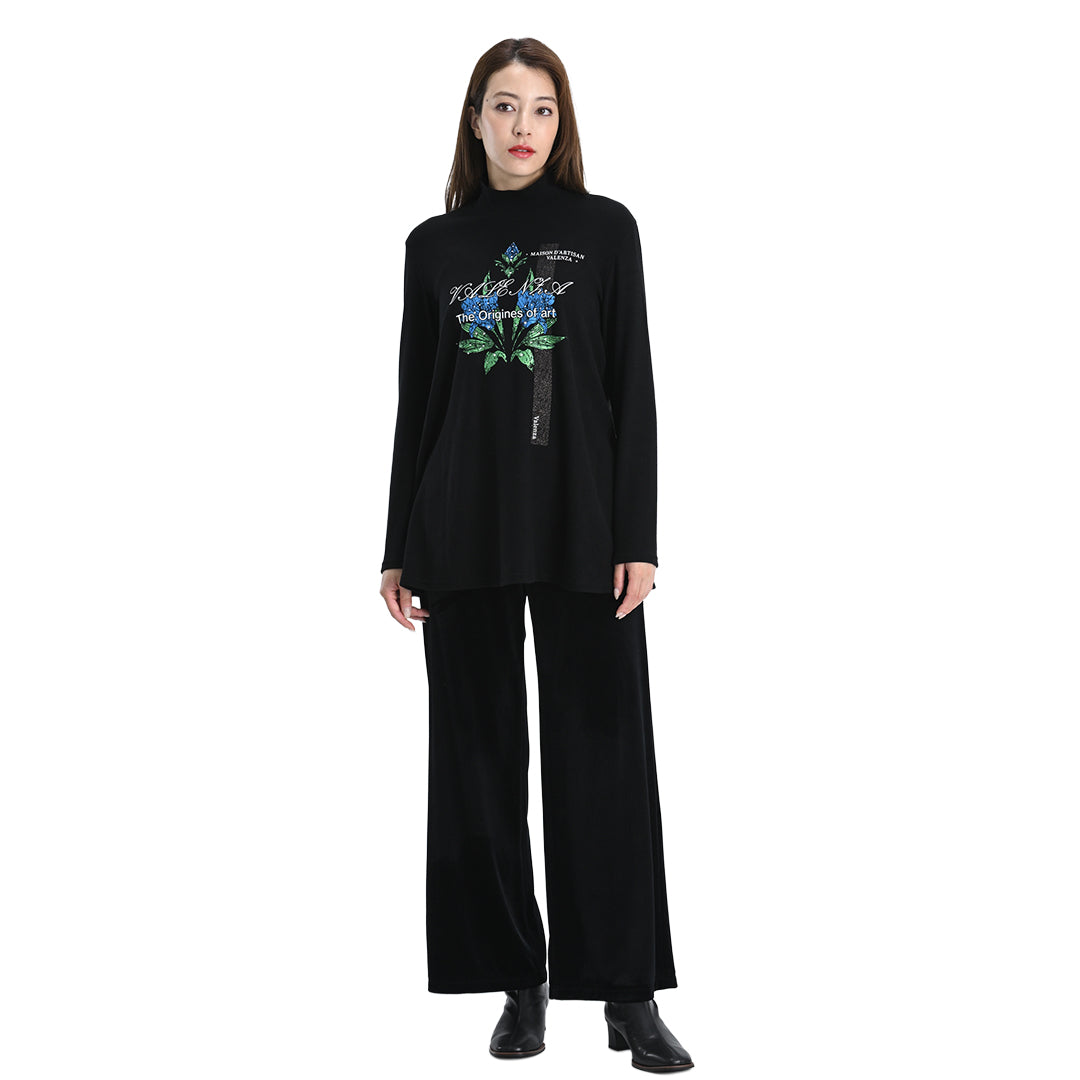 きれいめストレートパンツやテーパードタイプならアウトスタイルで着てもすっきり見え。