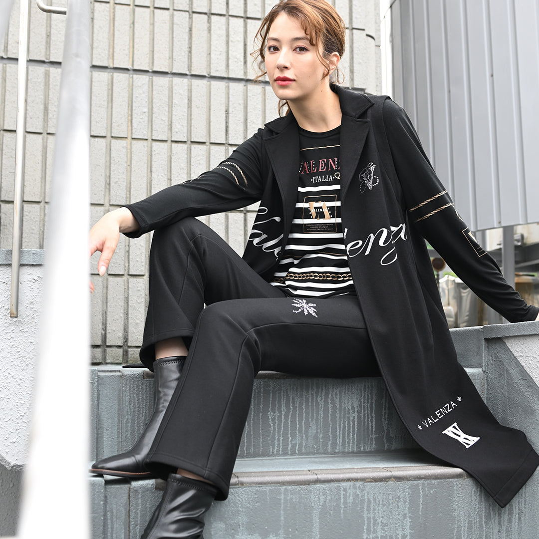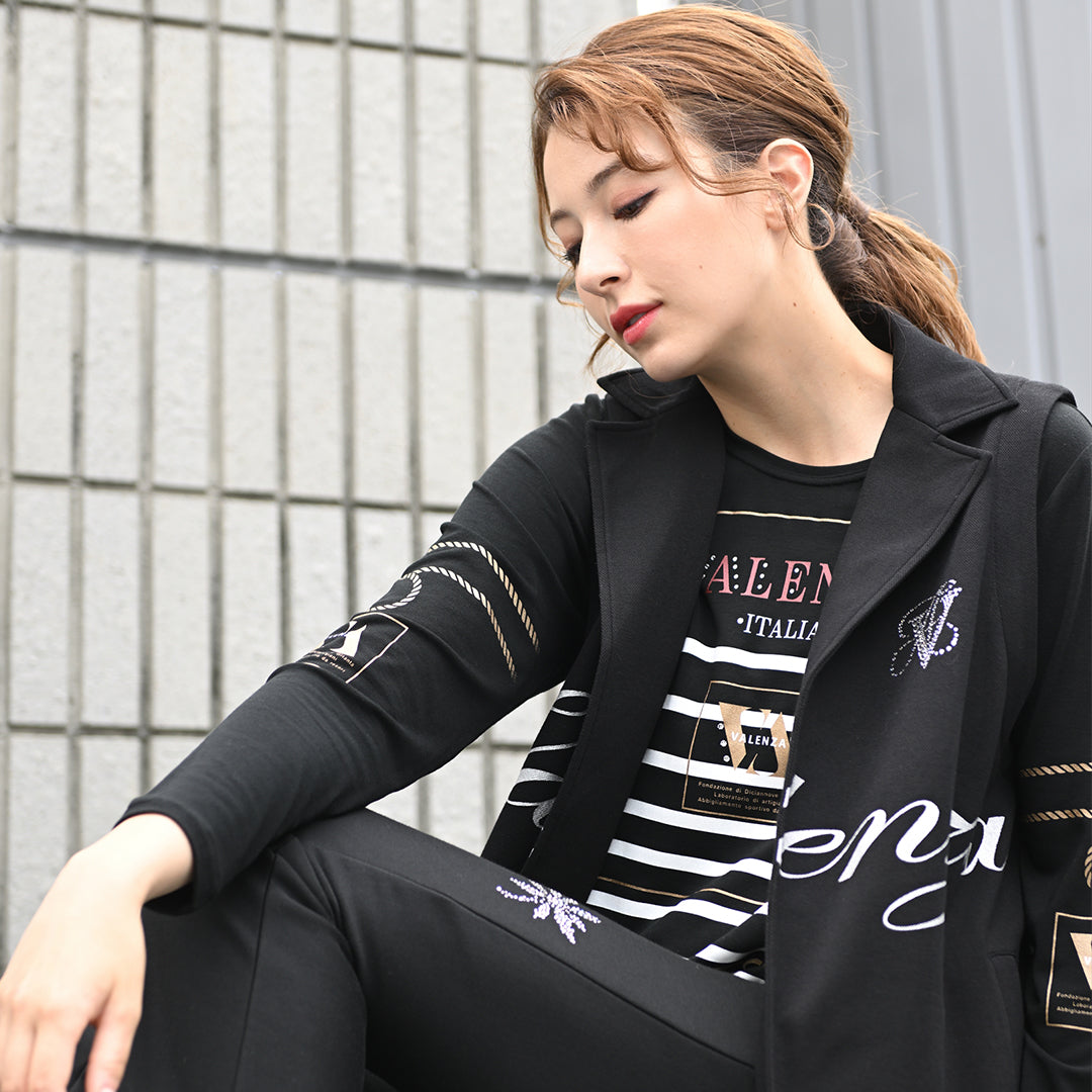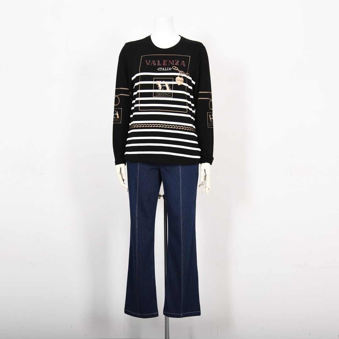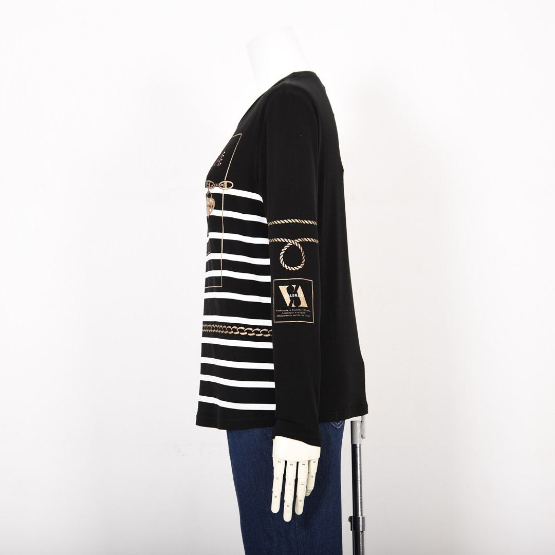 【Lサイズ】【保温】【吸湿発熱】フロントモチーフ×ボーダー カットソー VALENZA 5552702