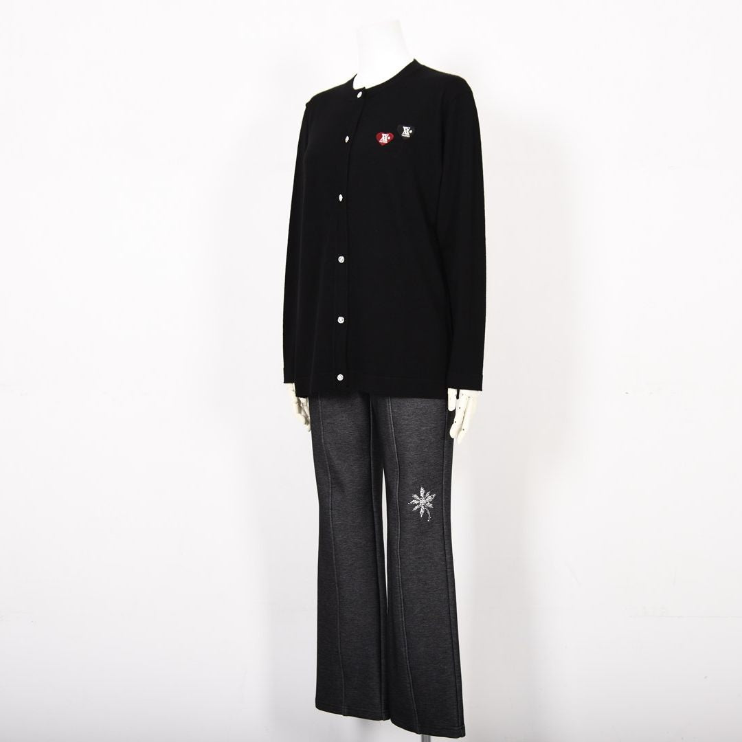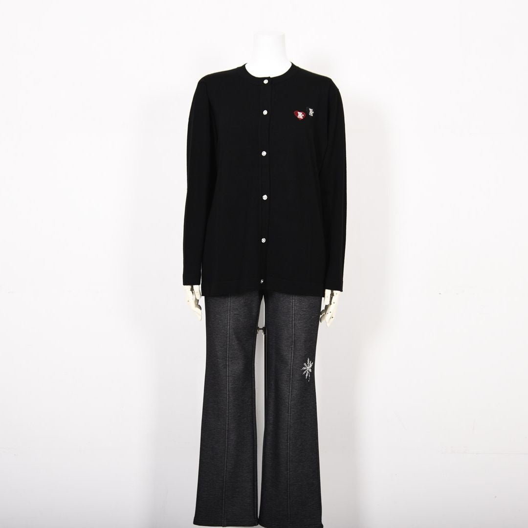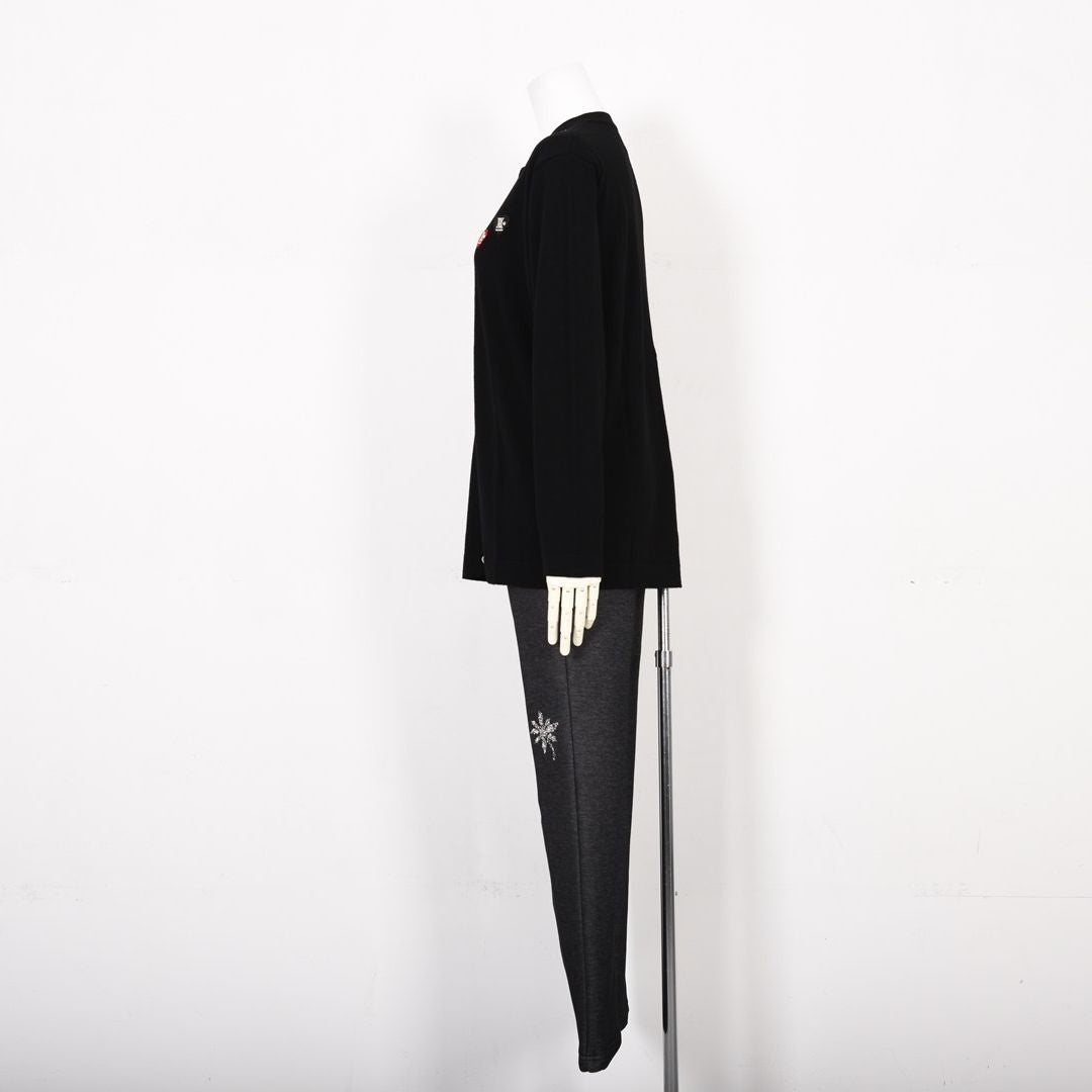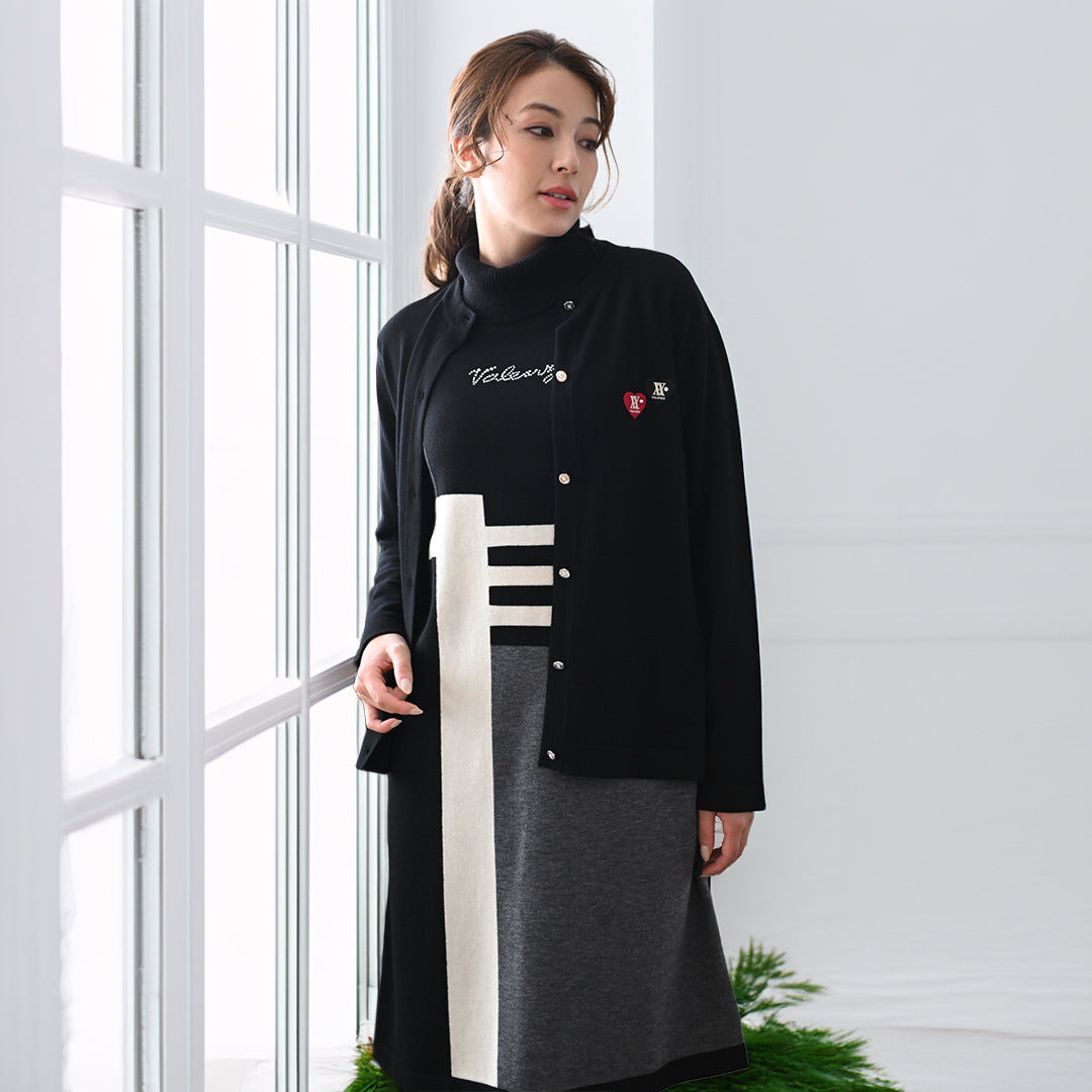 左胸には愛らしいモチーフを施し施し一気に旬顔ニットに。