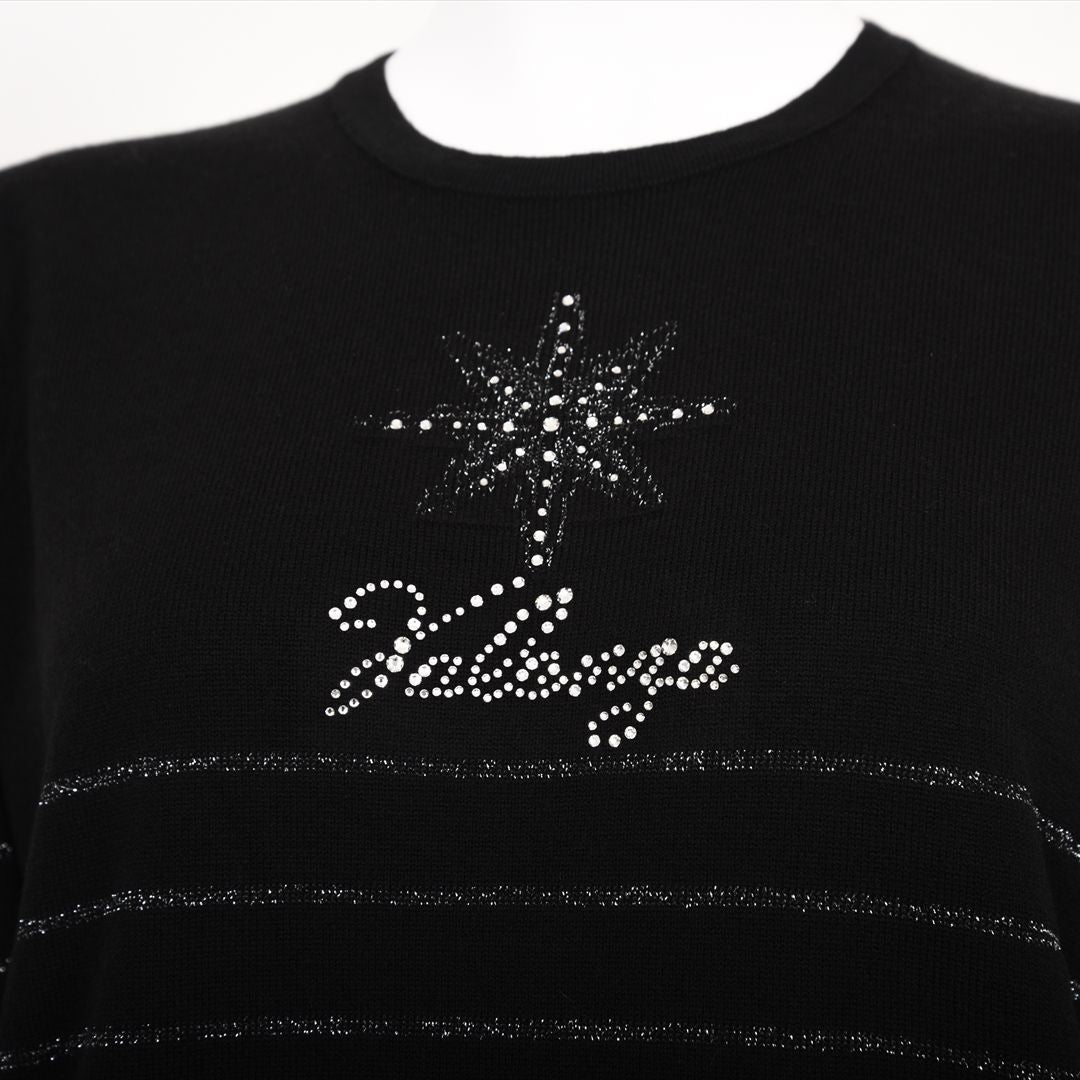 編み目が細かく密度の高いハイゲージニットです。すっきりとした見た目できれいめな印象です。ボーダー部分のラメニットはキラキラとした光沢感があり視覚的なアクセントに。