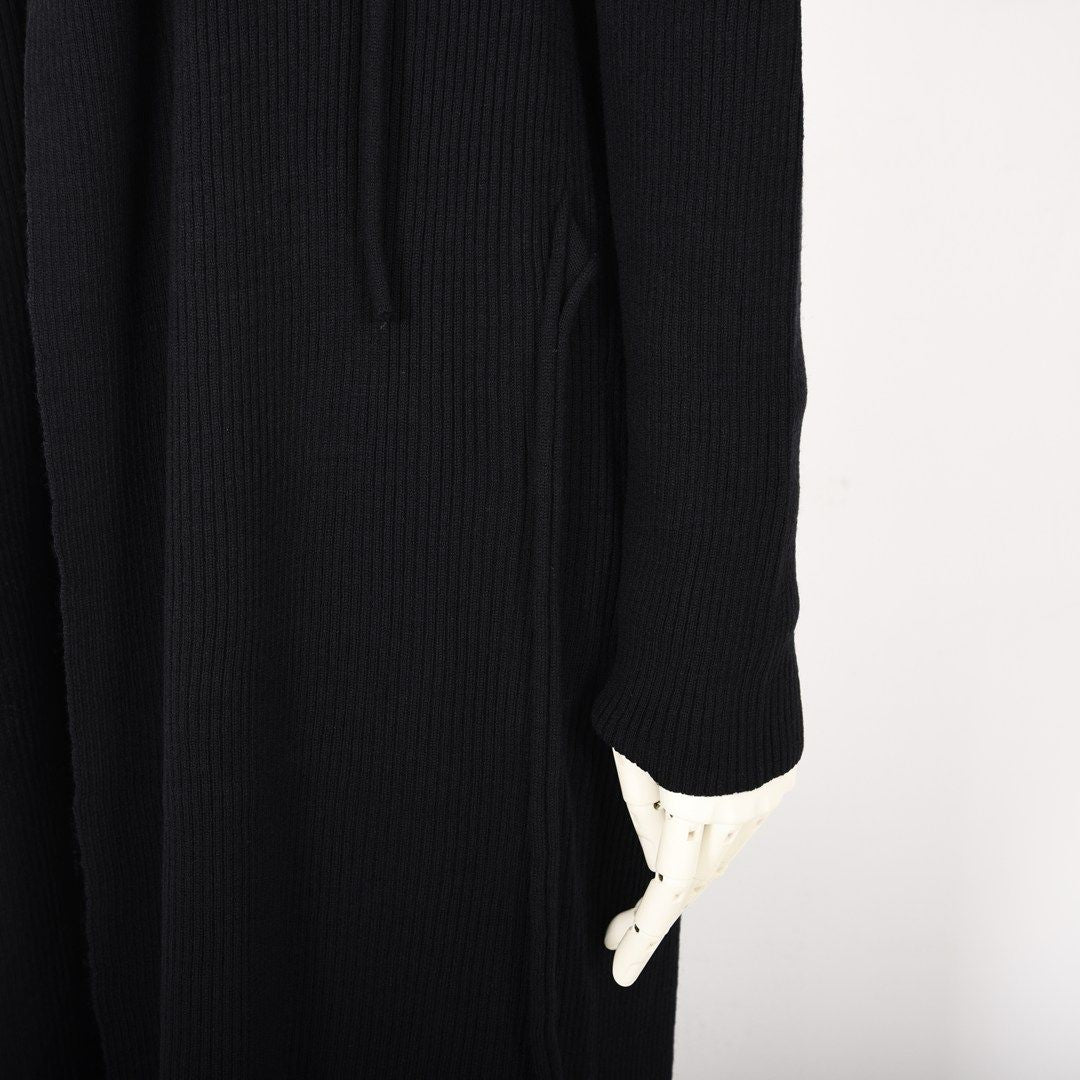 ガウンタイプなので身体から離れてゆったりした着心地ですね。着ていると毛の暖かみも感じます。チクチクせず肌あたりもやわらかでした。着丈はヒザくらいのロング丈。袖丈は甲にかかるくらい。(158cm/40号)