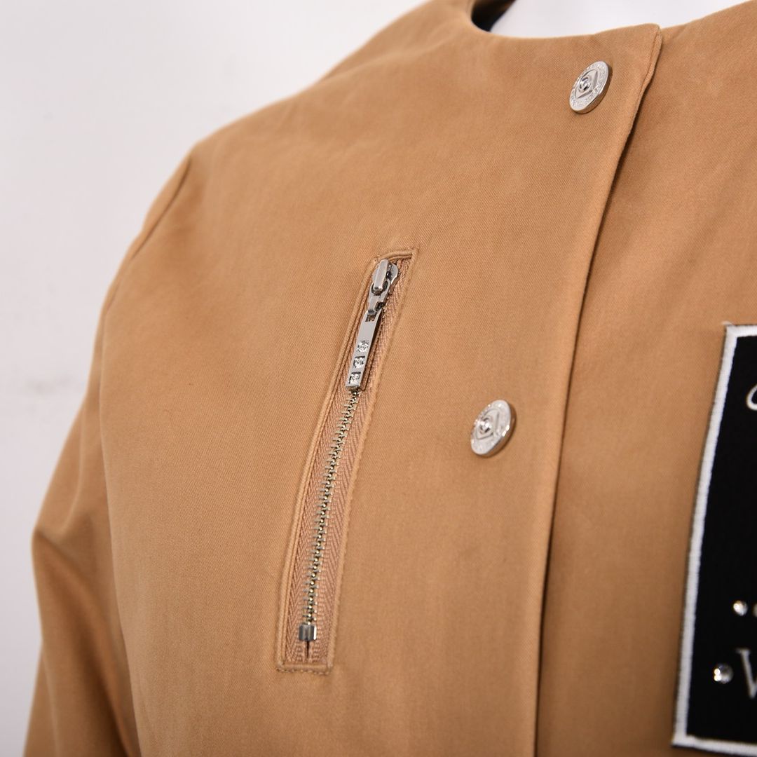 バレンザオリジナルのドット釦や左胸ワッペンのラインストーンが輝きます。
