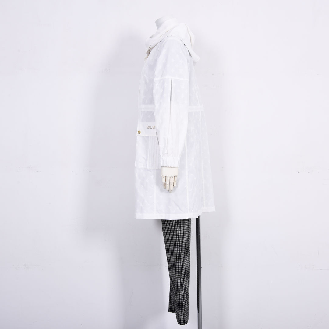 ファスナーを隠す前立てにボタンを配置しカジュアルな中にも上品さを演出しています。