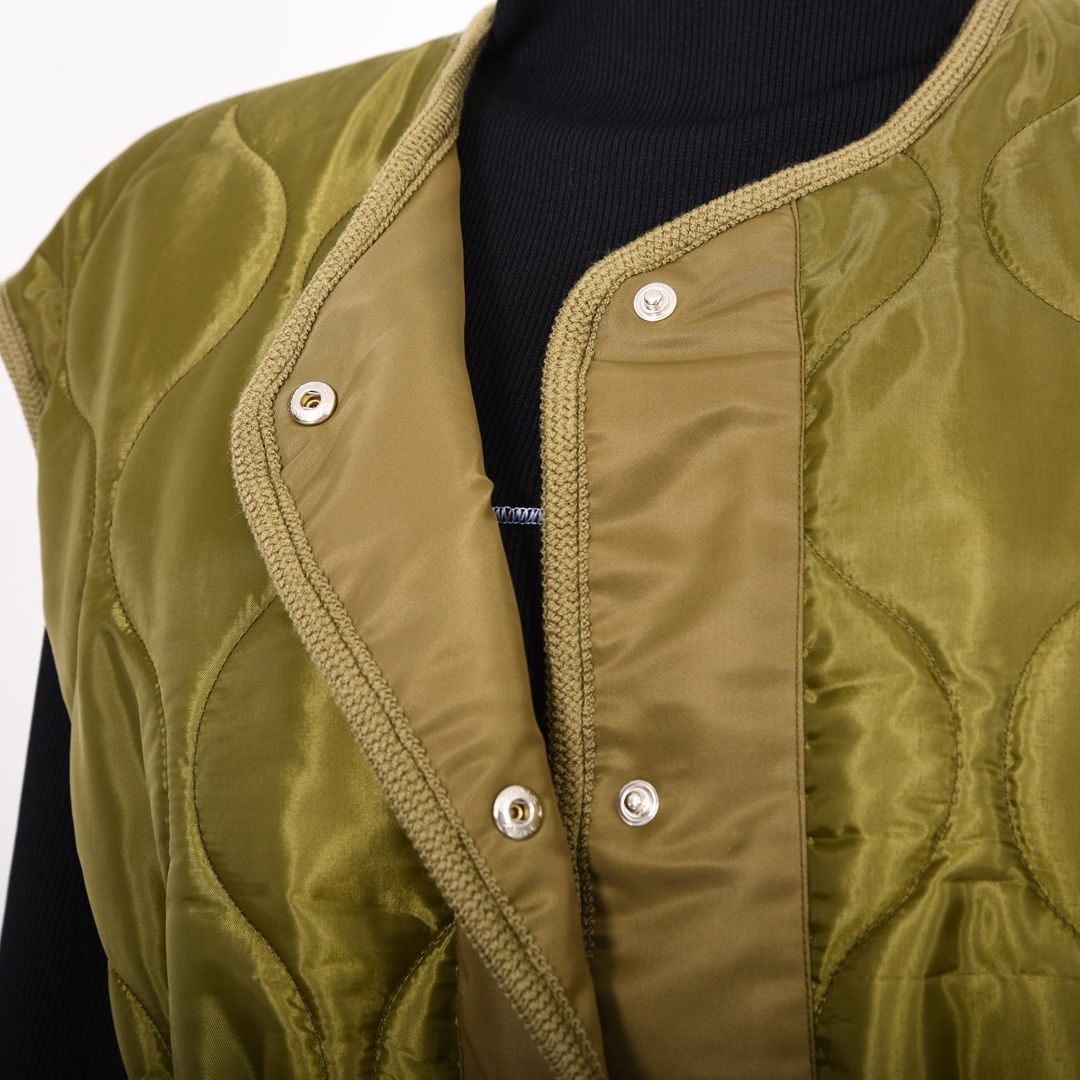 ミリタリー系のライナーでよく見かけるオニオンキルト素材。中綿は程よい厚みで保温性のある60gを使用しています。軽くて丈夫で、ふんわりとした優しい肌触りに仕上がっています。