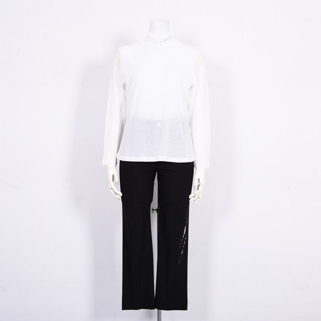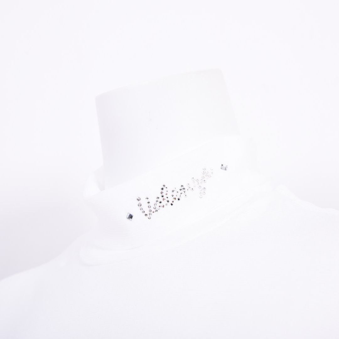 ハイネック部分にはさりげなくラインストーンを施しアクセントに。
