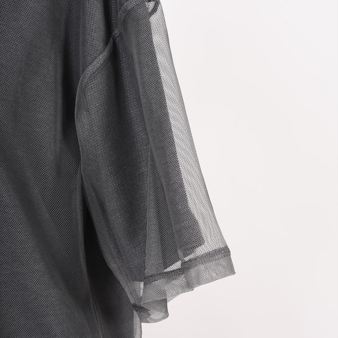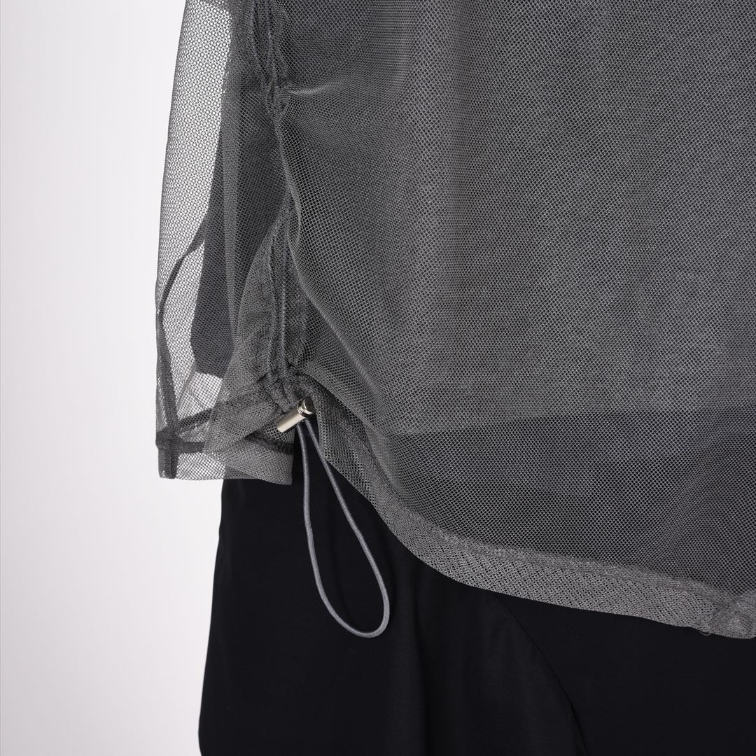 さらりとしたカットソーにメッシュを重ねて大人カジュアルに仕上げました。