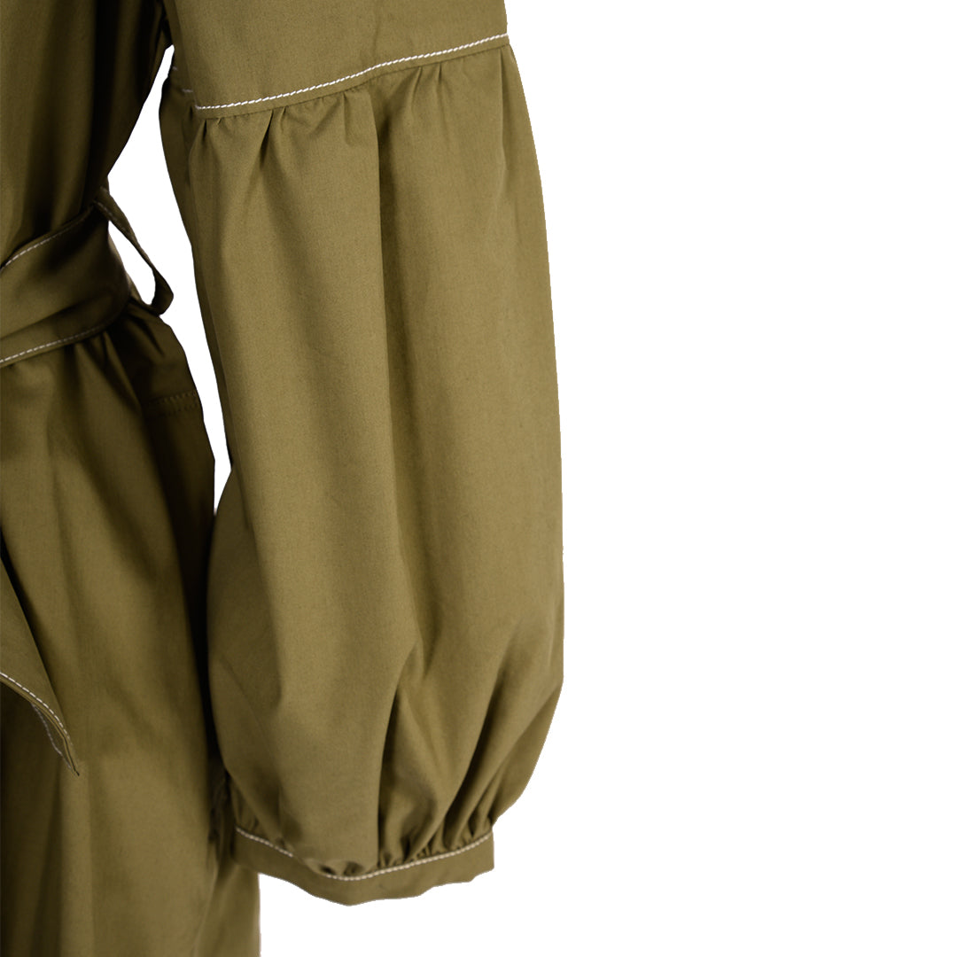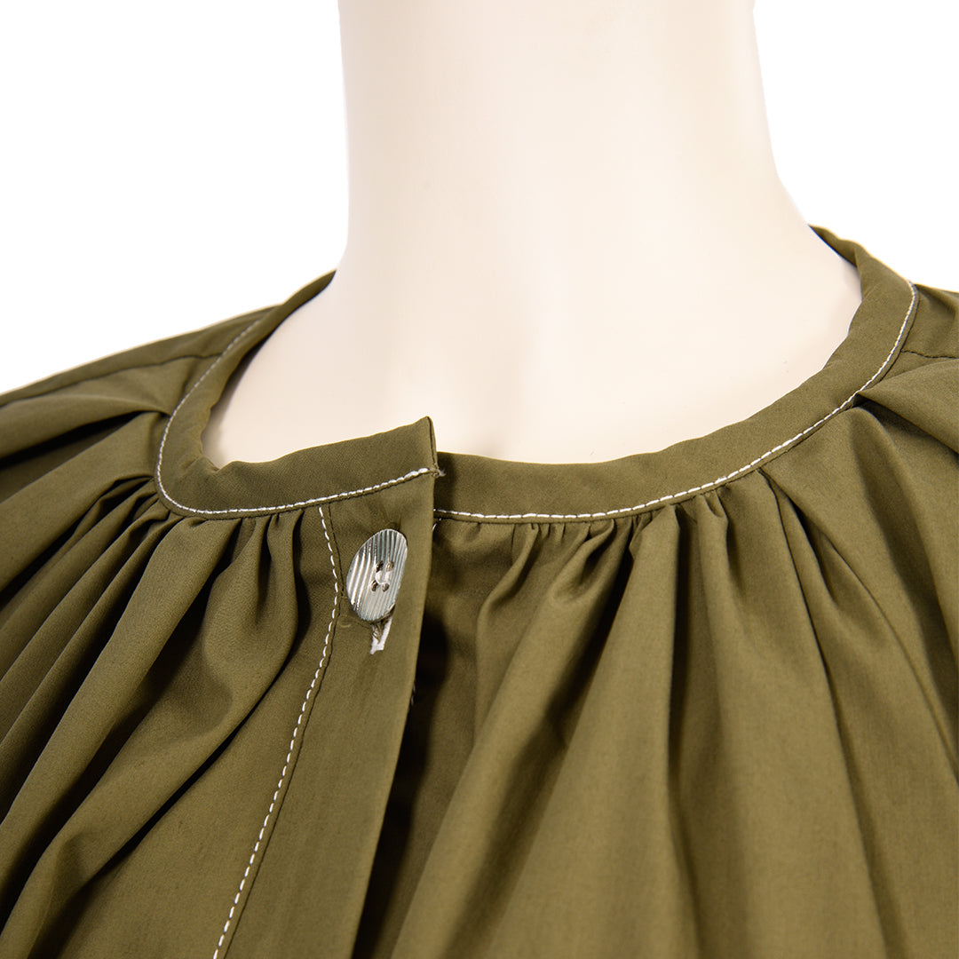 ネックラインはふんだんにギャザーを入れ、ふんわりなるように仕上げました。